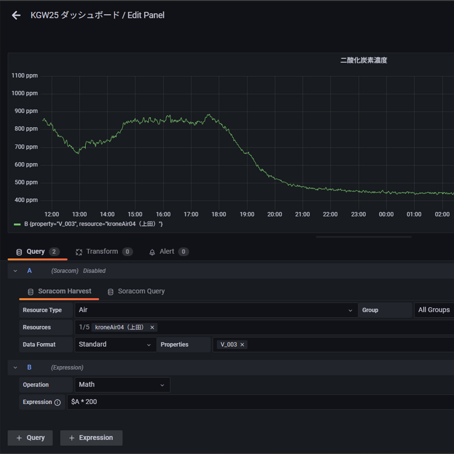 ダッシュボードに計測器を追加、編集する際は表示するデータを選択するだけで簡単に可視化できます。